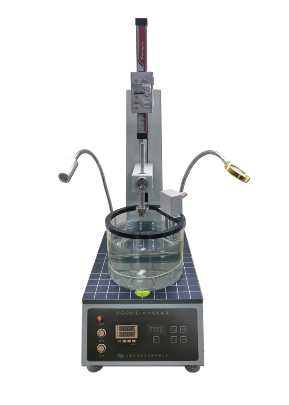 SYD-2801E1針入度試驗器是根據中華人民共和國交通行業標準JTG E20《公路工程瀝青及瀝青混合料試驗規程》 中的T 0604 《瀝青針入度試驗》、中華人民共和國標準GB/T 4509《石油瀝青針入度測定法》、GB/T 4985《石油蠟針入度測定法》、GB/T 269《潤滑脂和石油脂錐入度測定法》所規定的要求設計制造的。